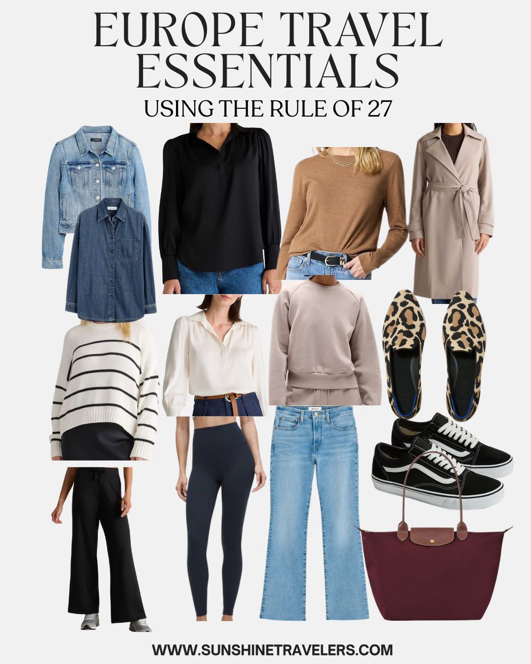 Europe Travel Essentials Using the Rule of 27 - Create 27+ outfits using 9 basic pieces