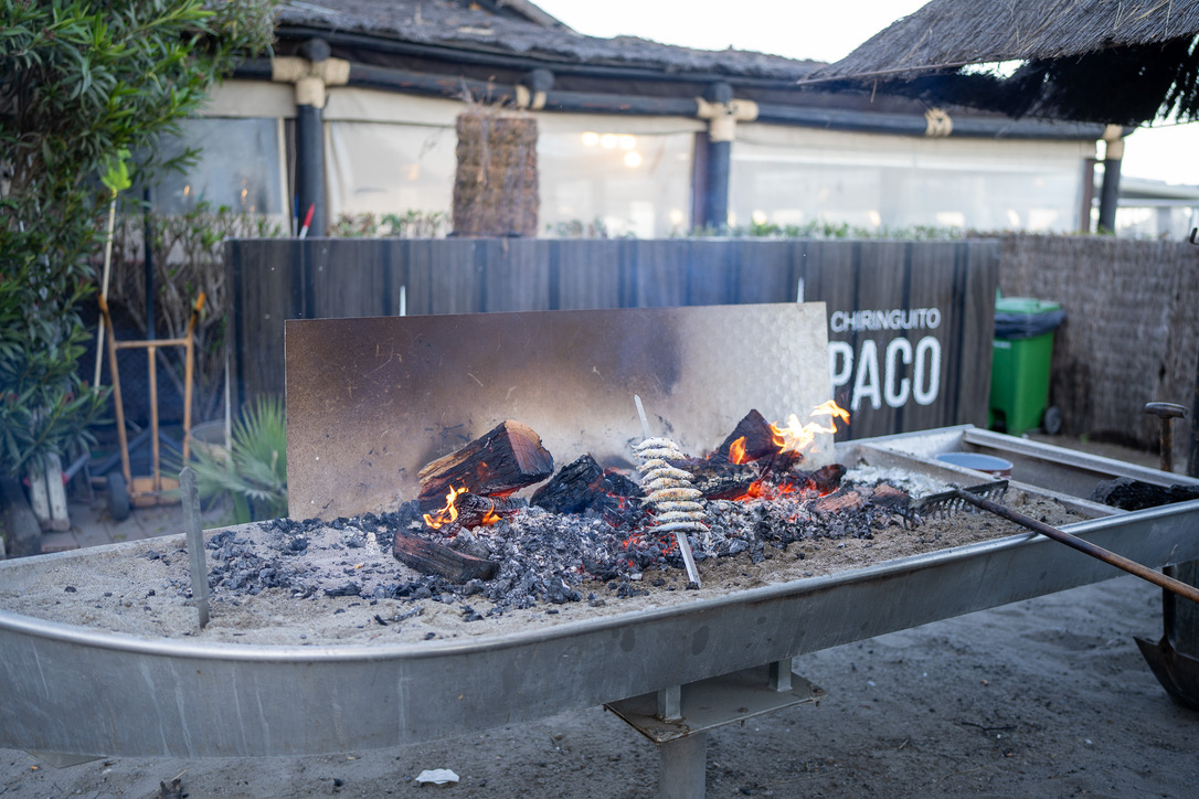 The beachside promenade fills with locals on nice days. The chiringuitos (beachside bars) serve cold beer and boquerones—fresh sardines grilled over coals on skewers. You eat with sand under your feet.